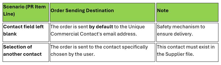 Regarding the creation of a Purchase Request (PR - Purchase Requisition), the sending system works as follows: